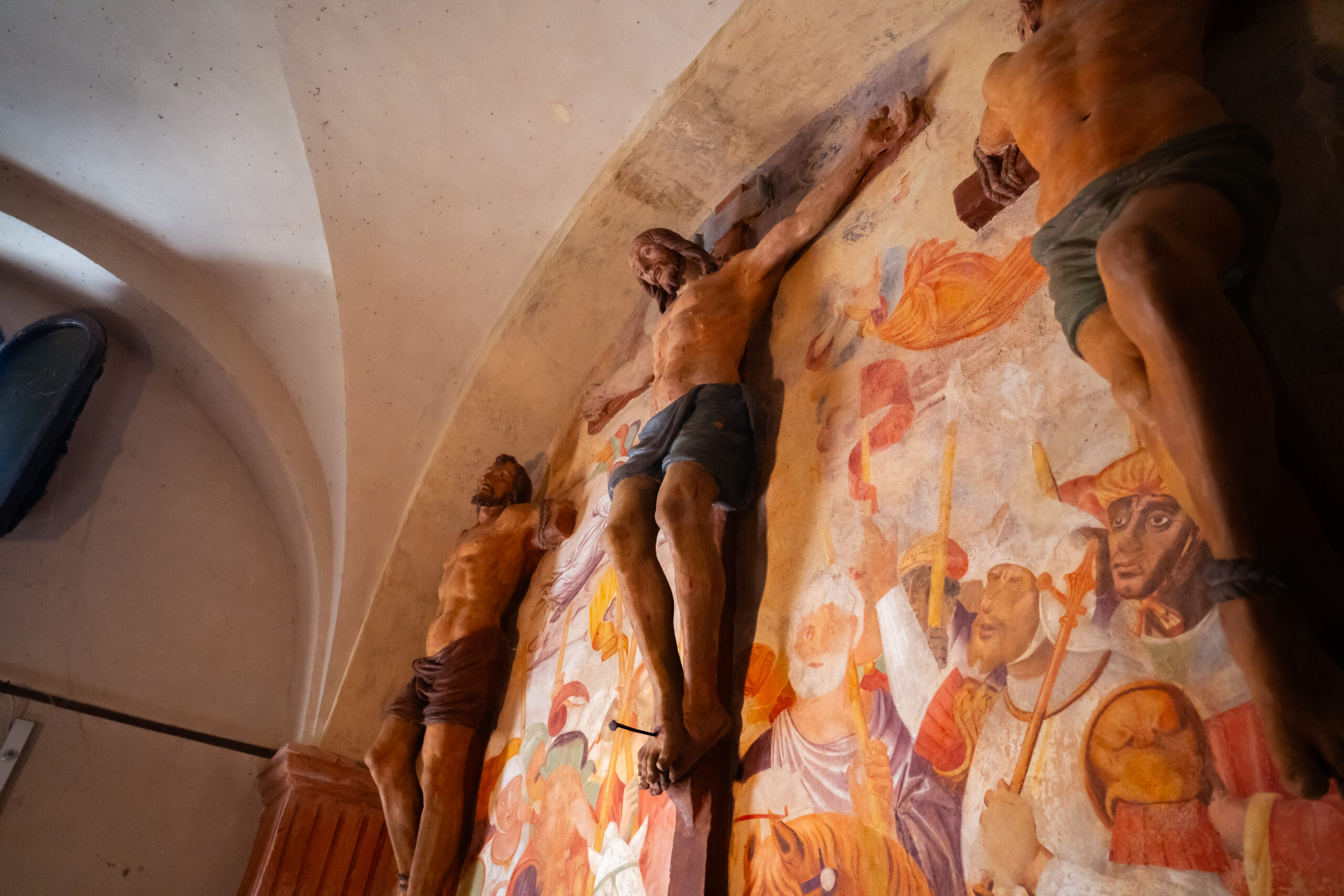 - Gruppi scultorei in terracotta policroma: le scene della Passione di Cristo rappresentate nelle cappelle si rifanno ai modelli rinascimentali per composizione ed espressività.