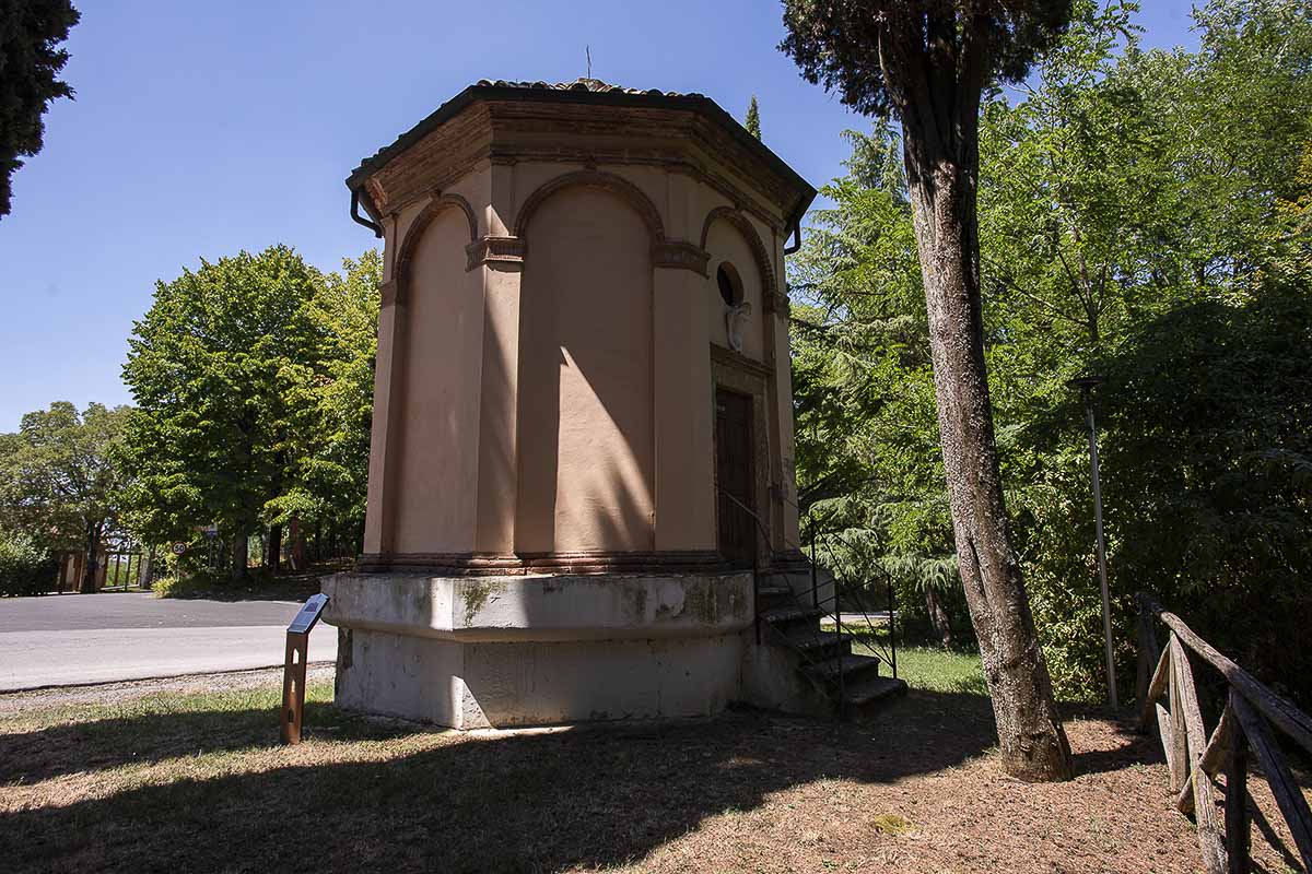 La cappella si trova sull’altura a ovest della Gerusalemme, identificata come Monte degli Ulivi, luogo in cui Cristo trascorse la notte prima della condanna e da cui poi avvenne la sua Ascensione. L’edificio è rialzato rispetto al terreno, a indicare l’elevarsi di Cristo al cielo, ed ha una pianta ottagonale, come l’omologo gerosolimitano, dalla chiara simbologia correlata alla Resurrezione: la vita del cristiano, scandita dai sette giorni della settimana, con il battesimo entra in un metaforico ottavo giorno eterno.