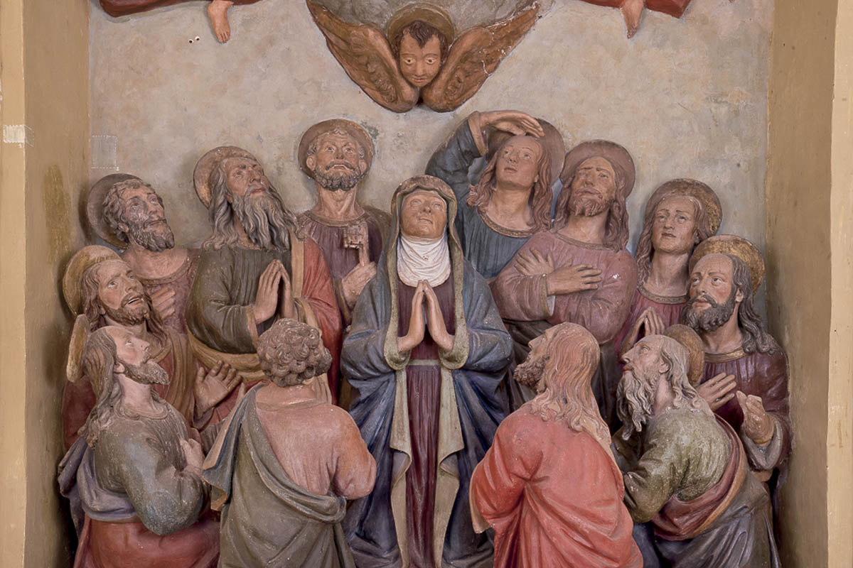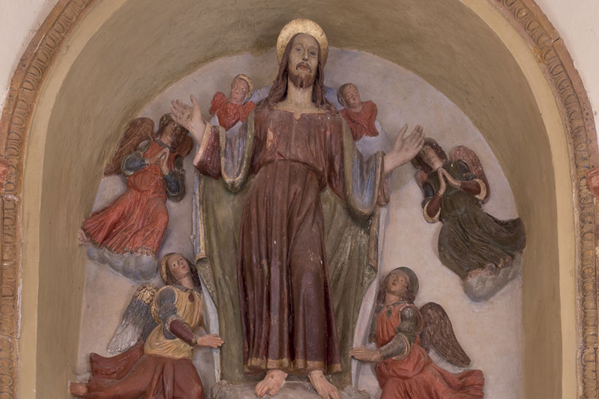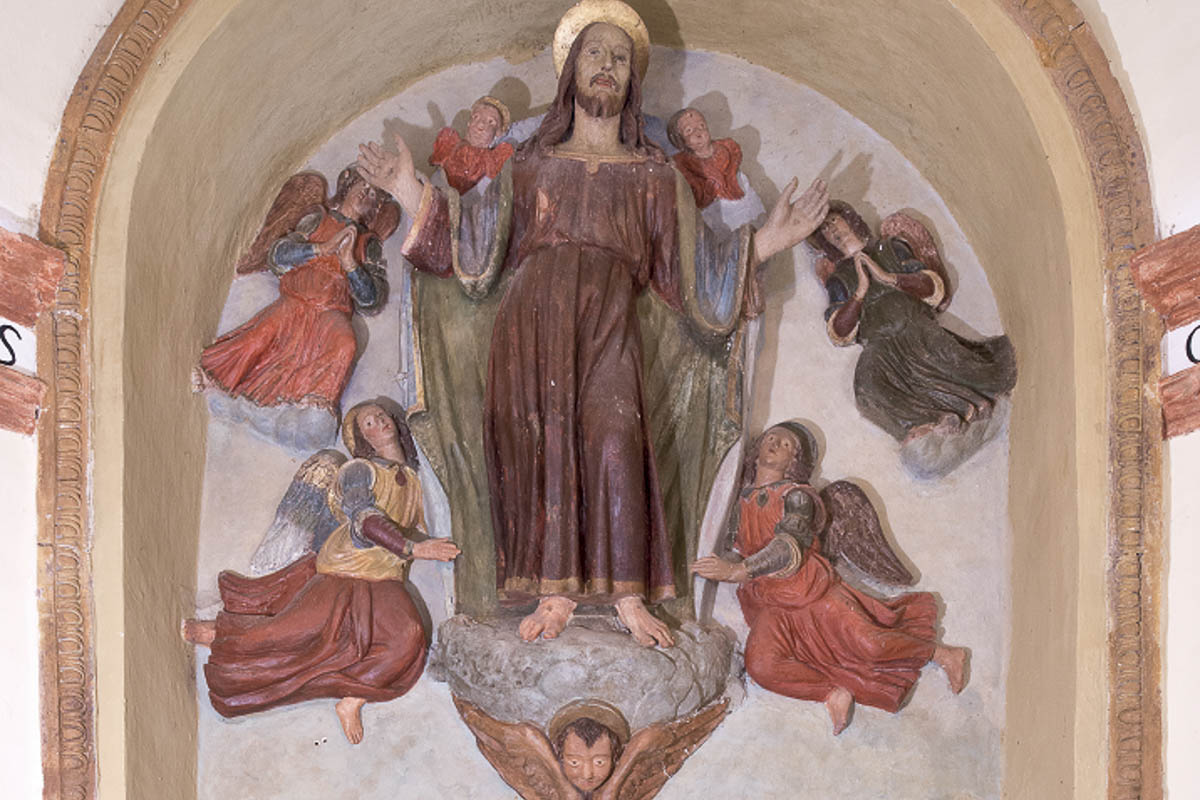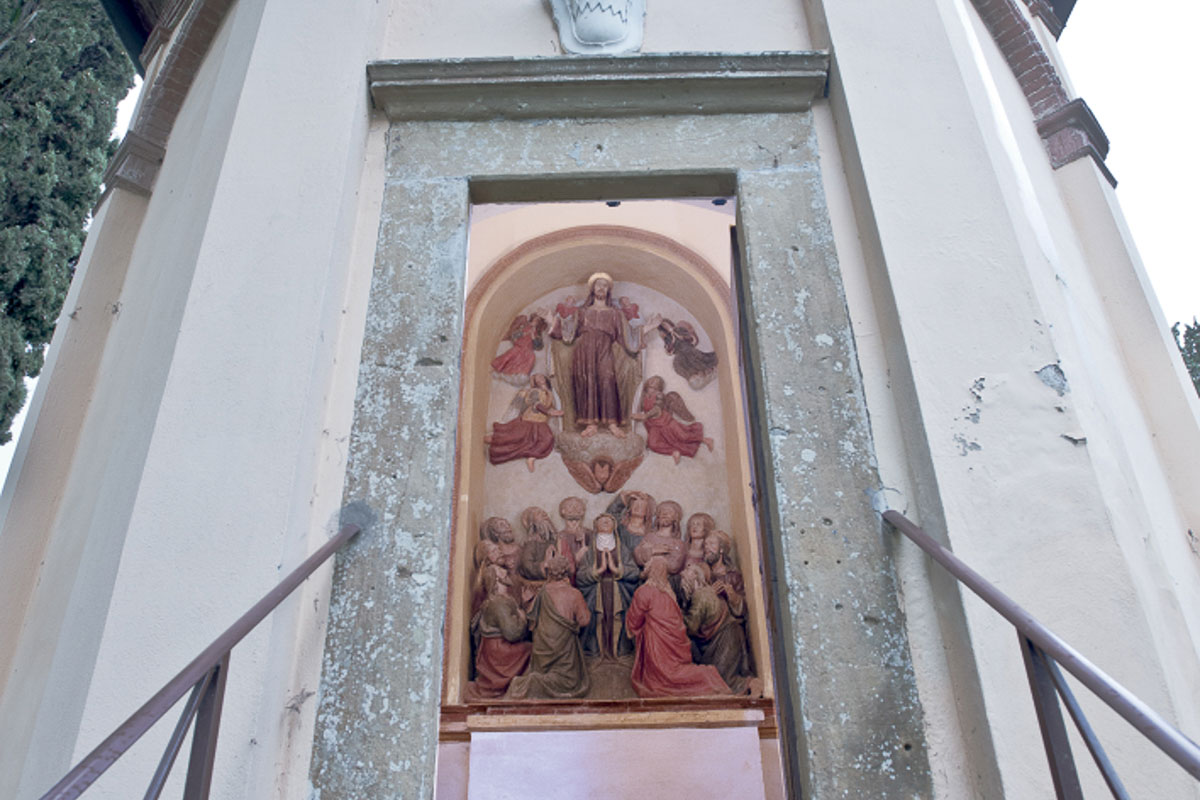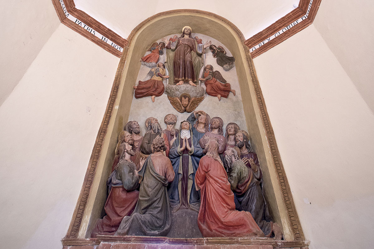 All’interno l’episodio è rappresentato con grande semplicità e realismo: Cristo ascende al cielo circondato dagli angeli mentre in basso la Madonna e gli Apostoli assistono con gioia e stupore. Sul pavimento, a destra dell’ingresso, è presente una pietra con l’impronta del piede destro che, secondo la tradizione, Cristo avrebbe lasciato sul terreno nel momento dell’Ascensione. Qui, come in altre cappelle, sotto la direzione di Giovanni della Robbia, furono all’opera anche i suoi tre figli Marco, Lucantonio e Simone.